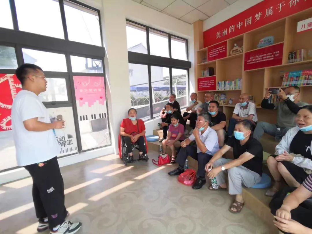 在南闸街道“残疾人之家”,江阴市残联副理事长唐卫娟、南闸街道办事处副主任金莉和部分残疾人声乐爱好者代表参加“江阴市残疾人声乐培训基地”揭牌仪式。